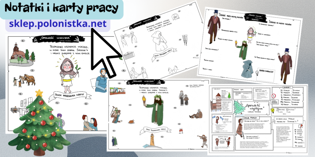 - Nędza i Ciemnota: Na koniec duch ukazuje ukryte pod swoim płaszczem dwoje przerażających, wychudzonych dzieci. To Nędza i Ciemnota/Głupota – uosobienie największych zagrożeń dla ludzkości.