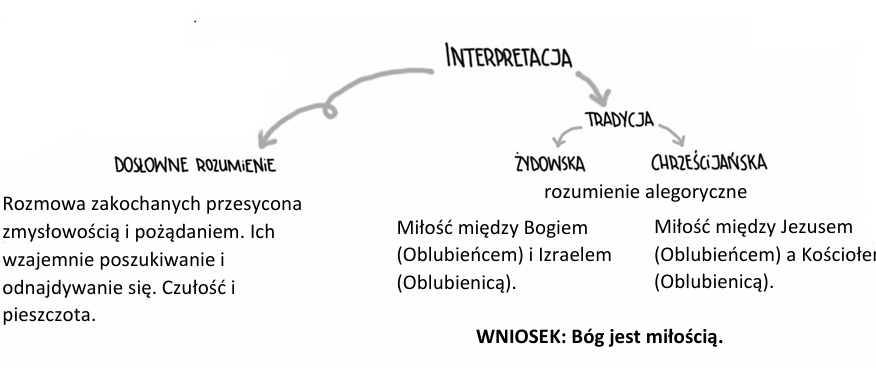 - Zastanawiające może być to, dlaczego taki tekst znalazł się w Biblii. Tradycyjnie interpretuje się „Pieśń nad Pieśniami” alegorycznie.